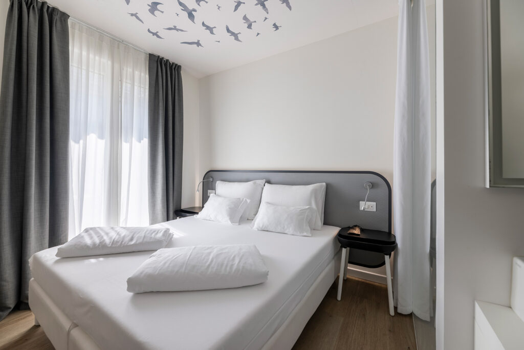 The rooms of Hi Hotels Torbole are equipped with all the comforts for a relaxing and pleasant stay. Elegant atmosphere, refined design and quality services make every night a unique experience, immersed in the heart of Torbole, with a breathtaking view over the entire Lake Garda.